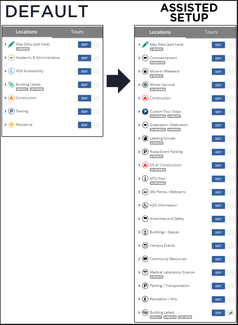 You will still be required to manage your content and make changes on your own after the initial setup. If your map includes renderings, you will also be required to utilize the Concept3D CMS to input revisions for those renderings.