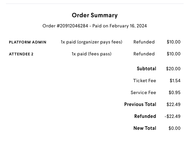 - Itemized Fees: Any associated fees now have their own line items on both the order confirmation page and email. Whether it’s ticket fees or payment processing fees, attendees will know exactly what they’re paying for.