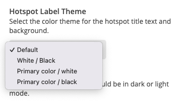 A new dropdown menu in the hotspot editor called “Hotspot Label Theme” allows you to select from four styling options: