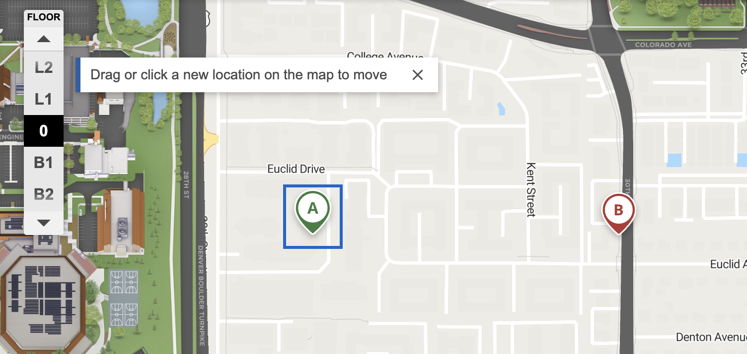 Functionality for selecting "Start point, A" and "End point, B" on the map can now be operated with a single tap or click, without requiring users to perform a dragging motion. This ensures that users with dexterity or mobility disabilities can set wayfinding points more easily and meets accessibility standards (WCAG 2.2, 2.5.7).
