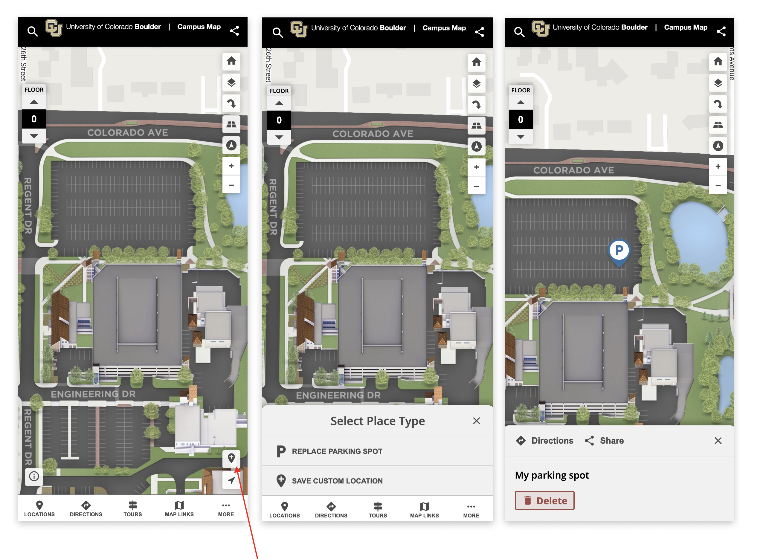 We started work on a new mobile feature to allow end users to save a custom pin location or parking spot to their mobile device session! Then share or get directions to that location later. More to come as the feature continues through development!