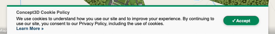 Improved Styles & ADA Contrast on Cookie Policy Modal: The Cookie Policy modal was previously branded with the Concept3D green. This color fell out of contrast requirements and often looked out of place. We now use client controlled styles to ensure the Cookie Policy not only passes contrast requirements, but CMS admins can tweak the look and feel to ensure it matches their brand.