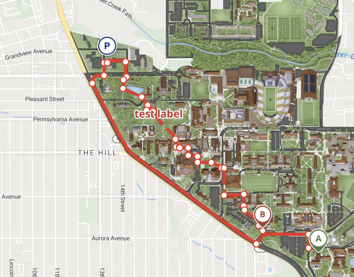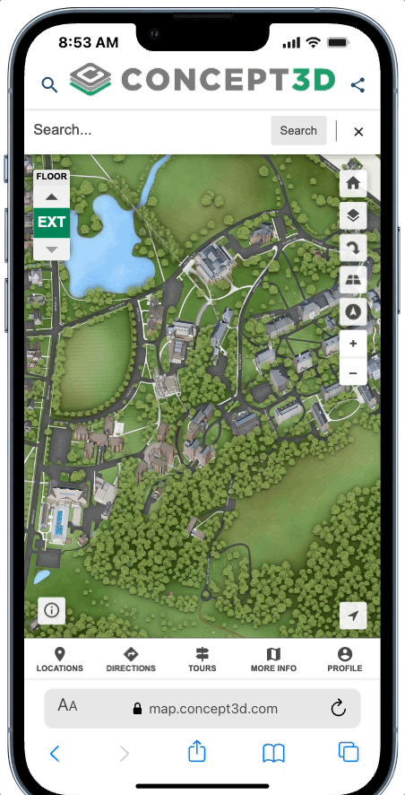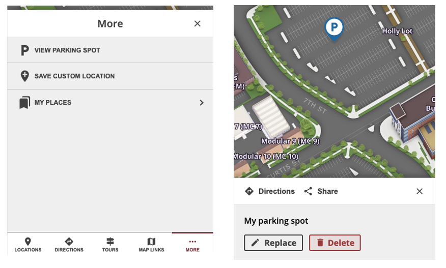 When searching for a location on the interactive map that has a designated parking lot, driving directions will now guide you to that specific parking lot instead of the main building entrance. This improvement ensures more accurate arrival points for users who drive to their selected destinations.