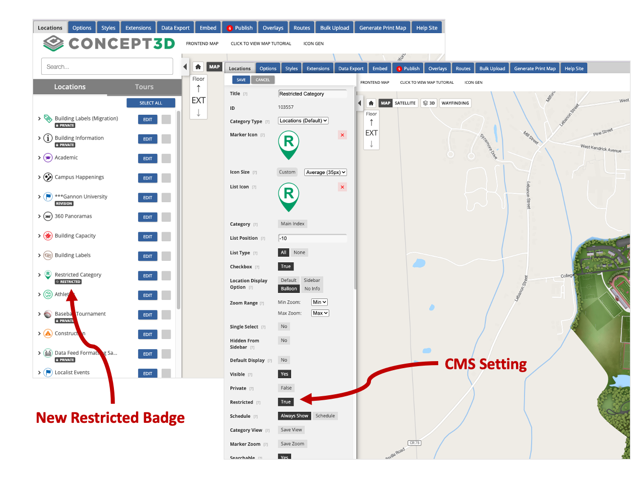Previously, the Restricted Maps feature required placing an entire map behind a login. Recently, we launched Restricted Categories, and with this release, administrators can now control access more precisely by restricting all interior content.