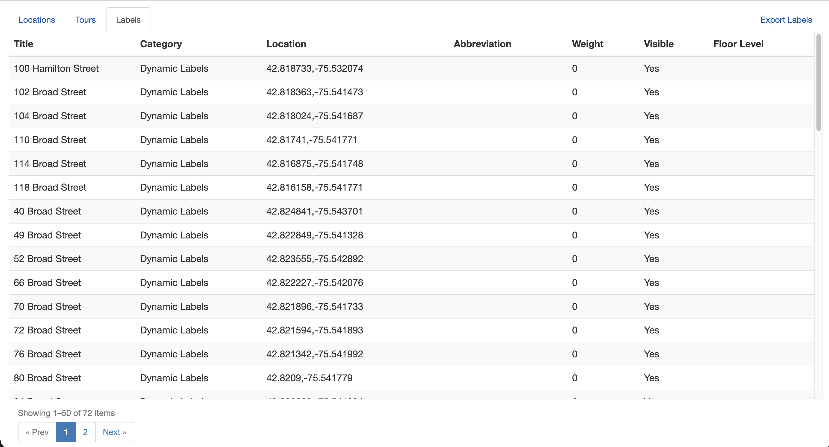 Map administrators using Dynamic Labels can now export their labels directly from the Data Export page in the CMS.