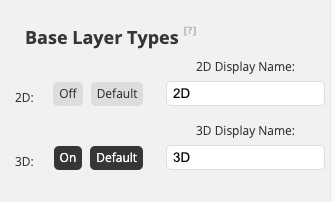 - Important: Clients do not need to enable multiple display options. Most clients choose a single map display type (2D, 3D, or 360º Maps) and present that as the sole experience for their users.