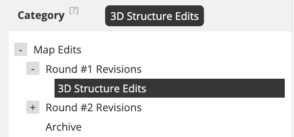 4. Add your revision to the correct subcategory under the Map Edits parent category. For example, if you are in Round #1 Revisions, then place the revision under the Round #1 Revisions subcategory.