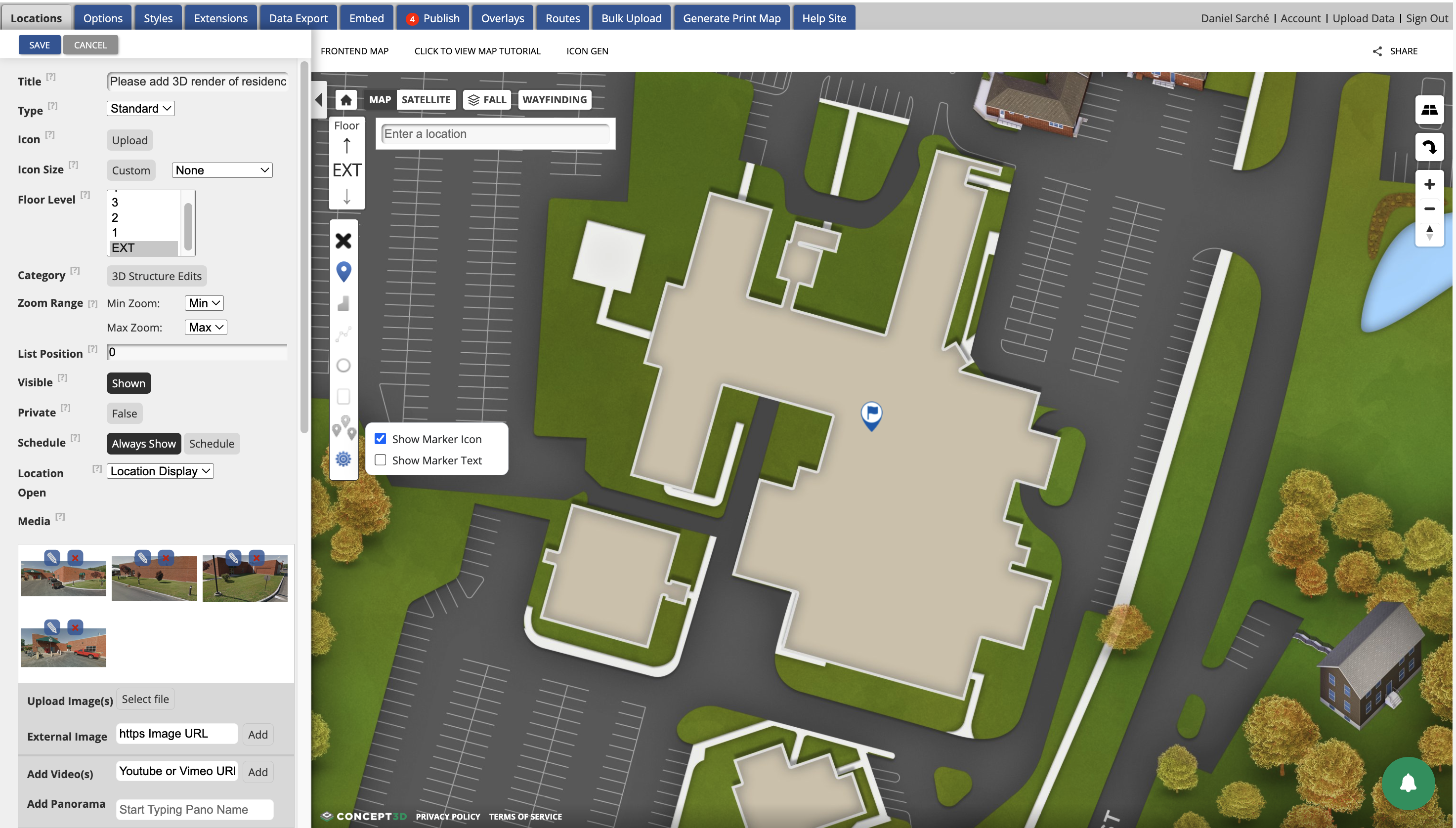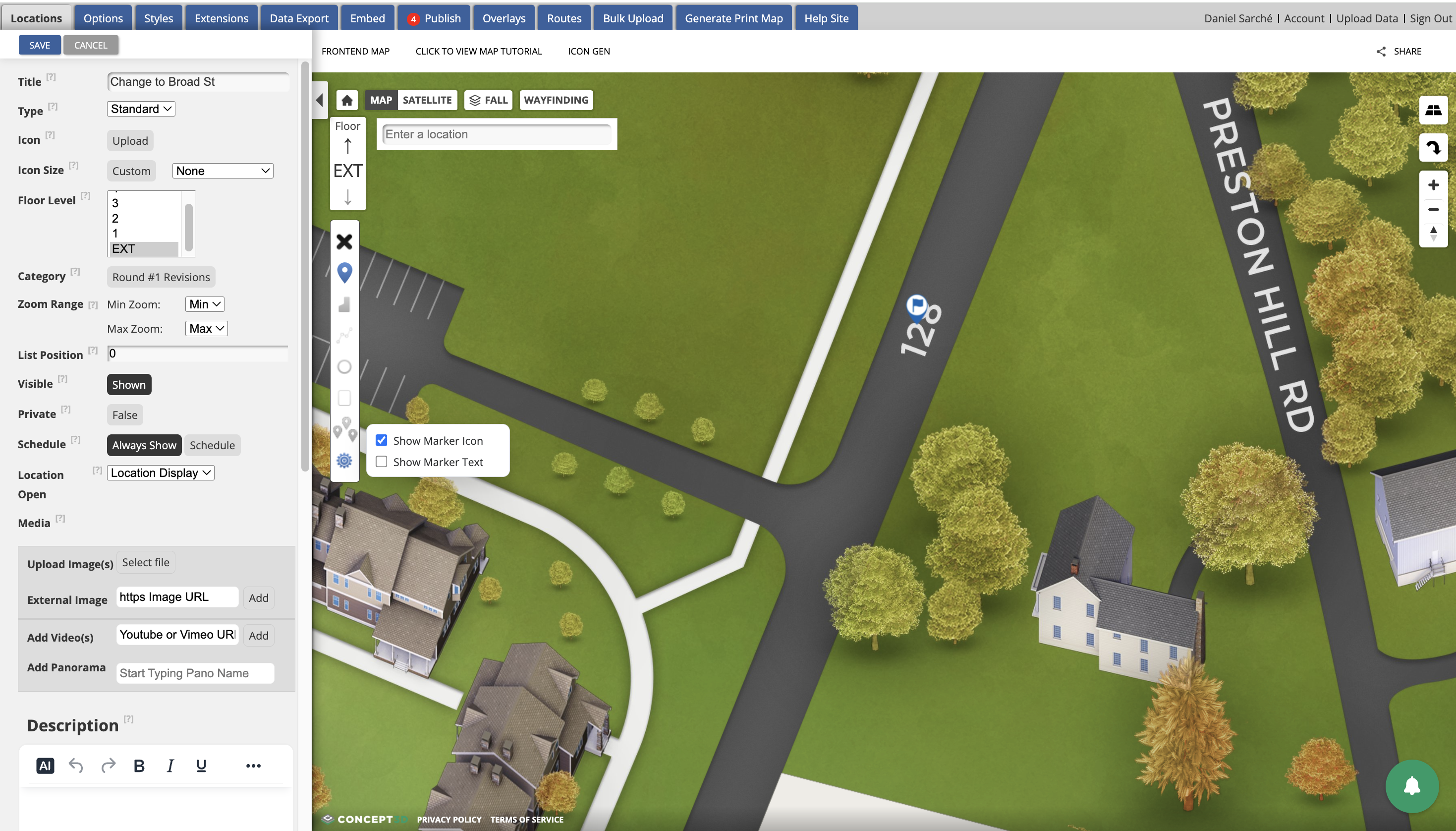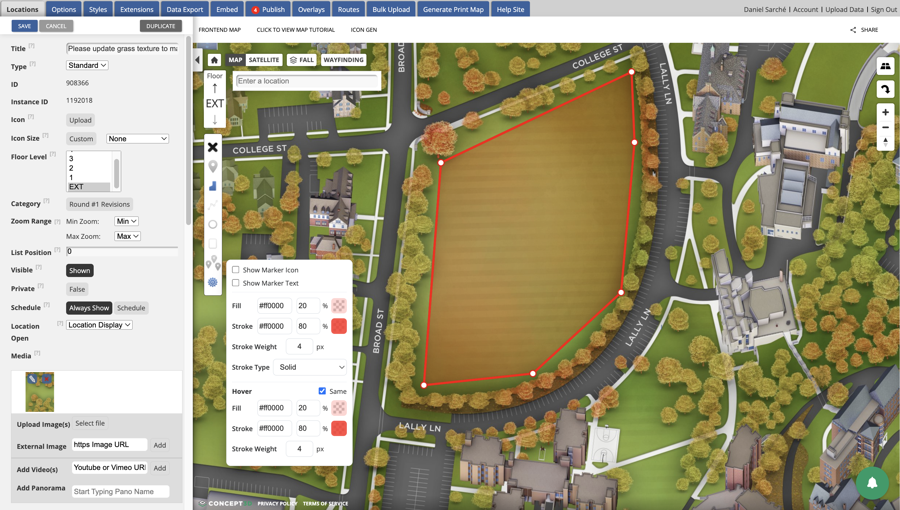 1. Create a new Location for each map revision by clicking ‘+ Add New Location’. Be sure to title your location clearly, e.g. “Add new Residence Hall”, or “Remove building”.