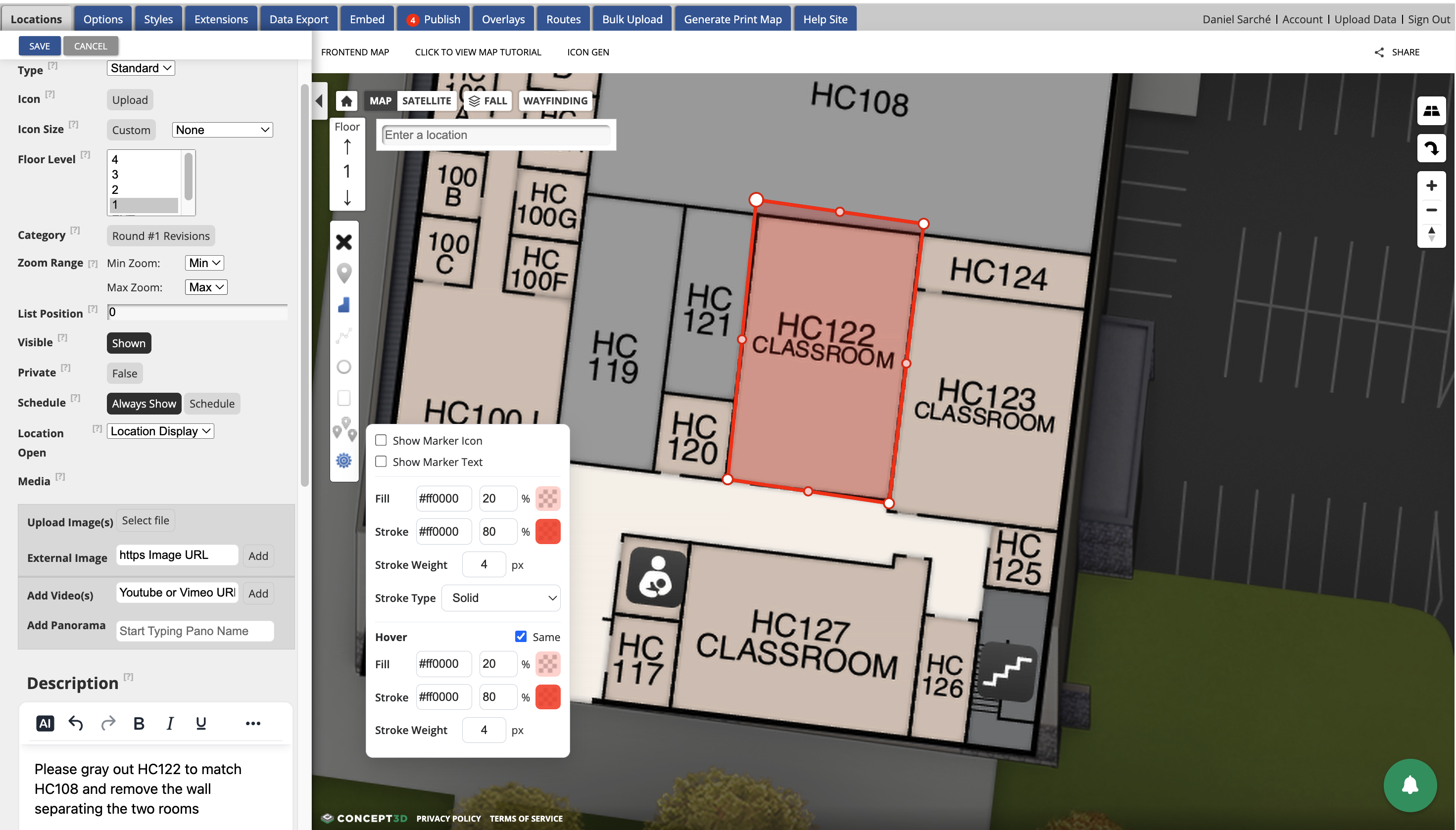 Hint: Revisions take place only during Onboarding, and are distinct from Map Updates, which typically take place only after your map has already launched. Once the two rounds of revisions are complete, any changes to the renderings moving forward will go through the Concept3D map updates process.